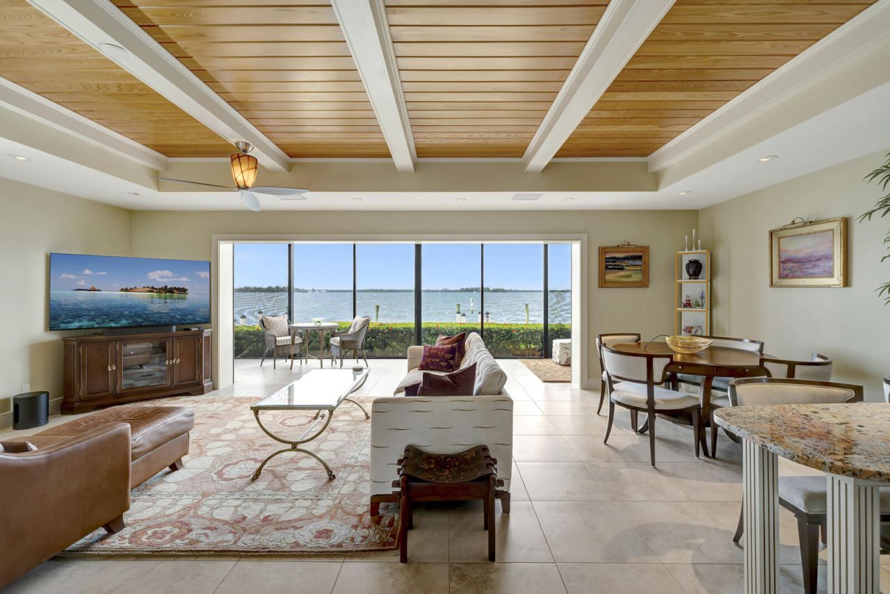 Fast track to Moorings Yacht & Country Club Membership! Resort lifestyle! Don't wait to start enjoying Beach, river, golf, tennis, fitness & MORE! Direct riverfront 2BR/2BA + Den condo meticulously renovated by IRPM (1 of Vero's premier Builders). Walls of glass provide stunning vantage point to watch everchanging moods of the Indian River lagoon. Guest BR suite has built-in storage & fenced courtyard-opportunity for gardeners to dabble. Heated pool, covered carport. Size are approx & subject to change.