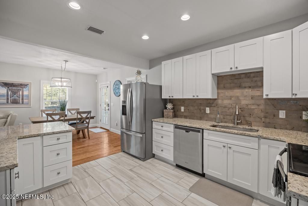 Rare find in Historic Lincolnville, St. Augustine. This move-in-ready, fully remodeled cottage blends historic charm with modern upgrades in one of the city's most desirable neighborhoods. Featuring a split floor plan with 2 private primary suites, each with updated en-suite baths and high-end finishes, this home offers flexibility for full-time living, a second home, student housing, or short-term rental potential. Original hardwood floors add warmth and character, while the updated kitchen is both stylish and functional. Durable exterior upgrades include concrete siding and a metal roof. A detached private garage is a rare luxury in Lincolnville. Enjoy large front and back porches plus a spacious backyard for entertaining or relaxing. Walk to downtown St. Augustine restaurants, shopping, and attractions, and less than 6 miles to the beach. Furnishings negotiable.