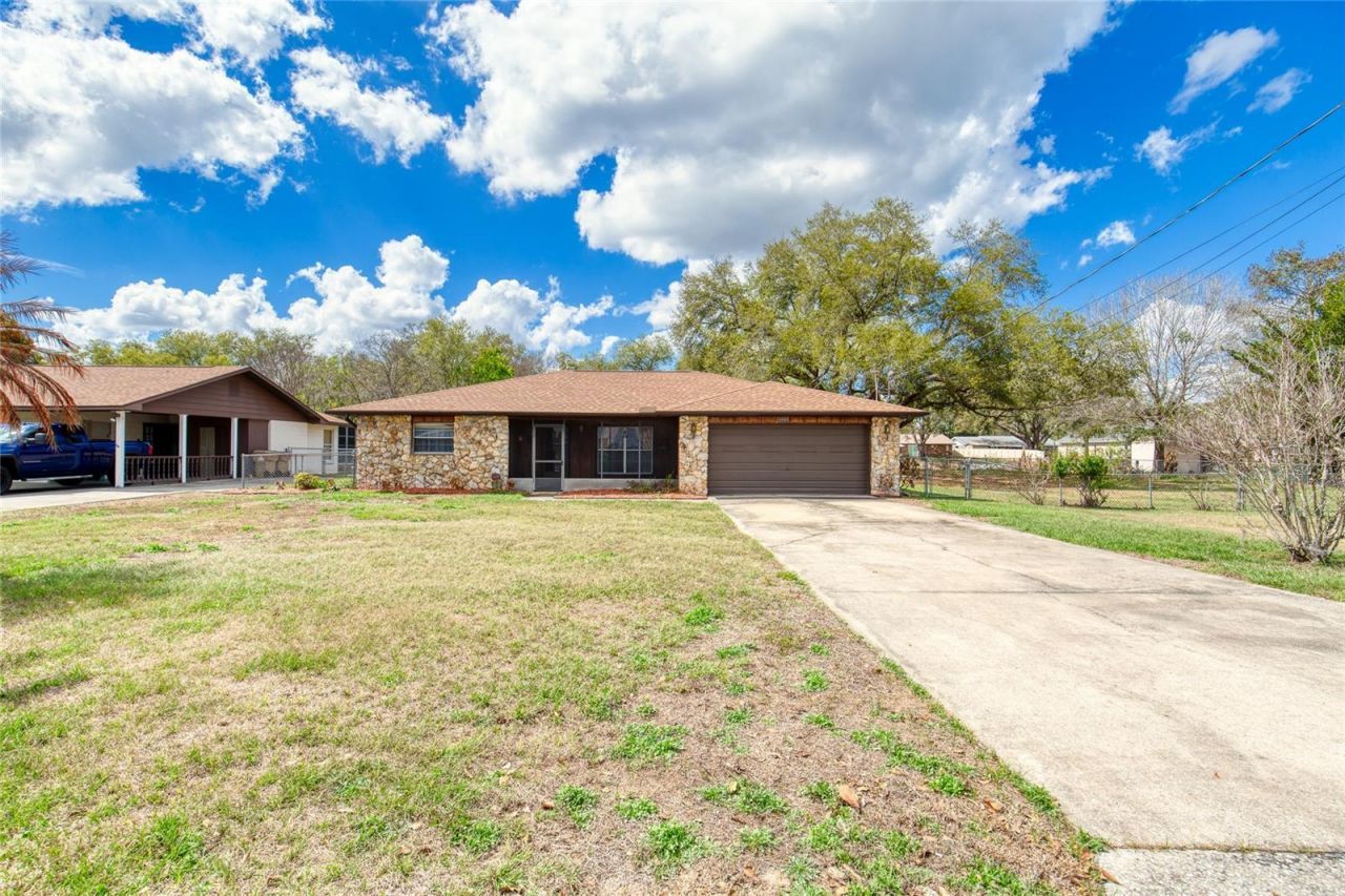 If these walls could talk... they'd tell stories of laughter, family gatherings, and a lifetime of memories. Offered to the public for the very first time, this canalfront home is ready for its next chapter for a future generation to make it their own. Life here revolves around the water. Step outside to your private dock with covered slip and cruise straight out to the Harris Chain of Lakes, known for incredible bass fishing and miles of scenic waterways. Bring the pontoon, the fishing gear, and your sense of adventure--this is the kind of place where sunset boat rides and early morning casts become part of everyday life! Inside, the open and flowing floorplan centers around a spacious kitchen at the heart that naturally becomes the gathering spot for meals, conversation, and celebrations. A 2023 roof adds peace of mind, while flexible spaces throughout the home allow you to tailor it to your lifestyle. The third bedroom was converted from the garage and includes central air vents,offering additional living space for guests, hobbies, or a home office. A massive utility room with its own exterior door provides endless possibilities--think crafting studio, workshop, extra storage, or whatever your creativity inspires. Outside, a beautiful sprawling oak tree frames the property and creates a stunning natural backdrop to the waterfront setting. Two sheds sit across the property line and can easily be removed or separated if desired. Wait! There's more! An adjoining lot is available for purchase separately, giving you the chance to double your footprint, expand your outdoor space, or simply enjoy extra privacy under the canopy of those gorgeous oaks. Bring the boat, soak in the peaceful surroundings, and enjoy the sights and sounds of nature that make the Harris Chain of Lakes such a special place to live and explore. Room sizes are approximate; all information intended to be accurate but cannot be guaranteed.