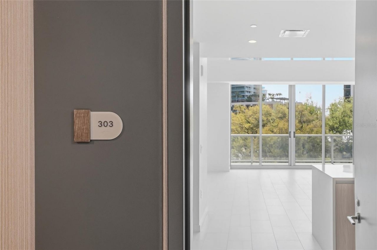 Experience exceptional design, volume, and convenience at 400 Central Avenue, Residence #303-one of Downtown St. Petersburg's most unique city home-style luxury residences. Defined by soaring double-height ceilings and dramatic two-story windows, the grand living space is filled with natural light, creating an airy, architectural statement rarely found in condo living. This two-level residence offers a highly desirable and flexible layout, including a private second-floor entry from the 4th-floor corridor, ideal for hosting guests or creating a separate retreat for family and visitors. The seamless connection to two oversized private terraces (totaling 576 sq ft) enhances the coveted indoor-outdoor Florida lifestyle, perfect for entertaining. Spanning approximately 2,292 sq ft, the residence features 2 bedrooms, 2 full baths, and a guest powder room. The primary suite has a spa-inspired bathroom and freestanding soaking tub, while the designer kitchen is equipped with premium JennAir appliances, sleek cabinetry, and an in-unit washer and dryer. A rare highlight is the direct-access convenience-this residence is positioned on the same level as building entry, allowing you to come and go without using the elevator. The nearby parking spaces (one assigned and one valet) further enhance the effortless, lock-and-leave lifestyle. Residents of 400 Central enjoy over 36,000 sq ft of resort-style amenities, including a luxury pool deck, fitness center, social lounge, theater room, game room, coworking spaces, and conference suites. The Sky Lounge Observatory on the 46th floor offers breathtaking panoramic views of Tampa Bay and the Gulf of Mexico, providing an unparalleled setting for relaxation and entertaining. Located in the heart of Downtown St. Petersburg, this residence is just steps to fine dining, upscale shopping, waterfront parks, marinas, and vibrant cultural attractions. Call to see this two story city home today!