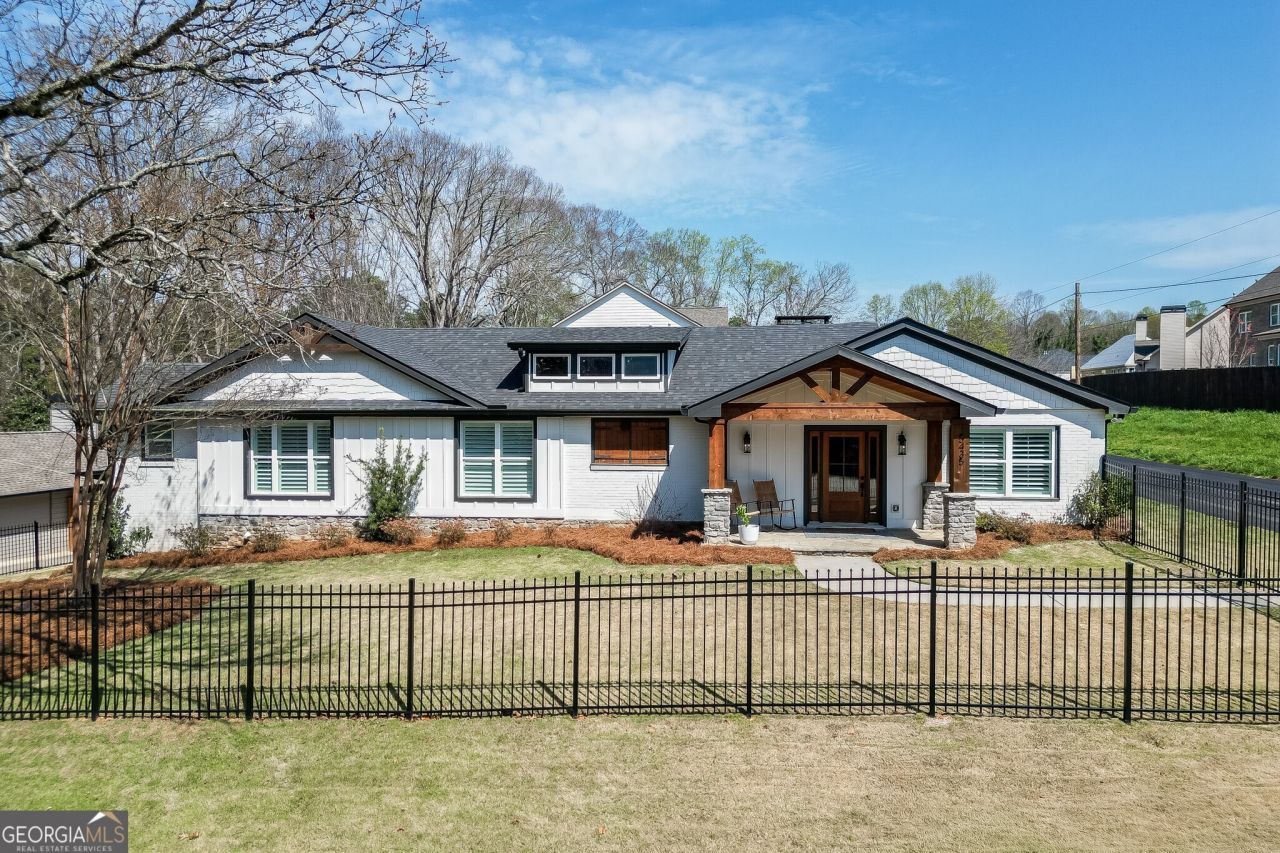 Fully renovated 4 bedroom, 3.5 bath RANCH in the City of Buford on sought-after Shadburn Ferry Road, zoned for Buford City Schools. This is a rare opportunity to own a move in ready home in one of Buford's most desirable locations, just minutes from Lake Lanier, Historic Downtown Buford, shopping, dining, and top rated Buford City Schools, including Buford High School. This four sided brick home offers standout curb appeal with cedar and stacked stone columns, a covered rock front porch, stained wood front door, and oversized lantern lighting. Inside, the home has been completely renovated with engineered hardwood floors, updated lighting, updated plumbing fixtures, and custom finishes throughout. This is a true renovation, not just a cosmetic update. The kitchen is designed for both everyday living and entertaining, with quartz countertops, a large island, Bosch appliances including a gas range, custom cabinetry with pull out storage, a farmhouse sink, glass tile backsplash, custom vent hood, and built in pantry. The great room features exposed wood beams, a masonry fireplace, brick accent wall, and shiplap detail. The dining area and rear entry continue the custom design with detailed trim and shiplap accents. The split bedroom floorplan offers privacy, and every bedroom includes custom closet systems. The owner's suite features barn doors, customized walk in closets, and a beautifully renovated bath with a soaking tub, oversized marble shower, frameless glass, updated fixtures, and built in storage. Outside, the property offers a garage with painted floor, WiFi opener, camera, and 220 volt EV charger, plus a covered carport with cedar and stacked stone columns, additional parking, and golf cart storage. The backyard includes a new stained deck, professional landscaping, landscape lighting, and black aluminum fencing in both the front and back yard. There is also a large stand up crawl space with vapor barrier for excellent additional storage. No HOA. Surrounded by newer construction homes over $1 million. Located in the City of Buford, this home offers the hard to find combination of a fully renovated ranch, prime location, and access to one of the most sought after school districts in Georgia.