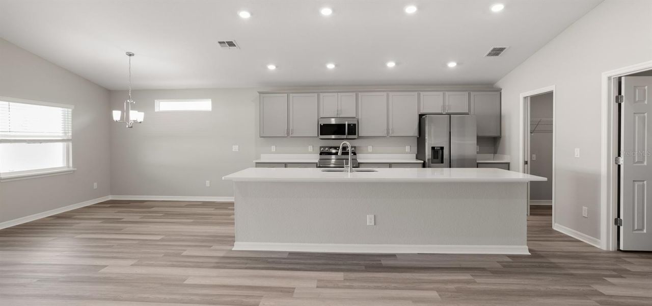 New construction home with 2005 square feet on one-story including 3 bedrooms, 2 baths, and an open living area, plus Den. Enjoy an open kitchen with Quartz countertops, Samsung stainless steel appliances, a walk-in pantry, and a spacious island, fully open to the dining caf? and gathering room. The living area, laundry room, and baths include luxury wood vinyl plank flooring, with stain-resistant carpet in the bedrooms. Your owner's suite is complete with a walk-in wardrobe and a private en-suite bath with dual vanities, a tiled shower, and a closeted toilet. Plus, enjoy a covered lanai, 2-car garage, custom-fit window blinds, architectural shingles, energy-efficient insulation and windows, and a full builder warranty. ***Please note - Virtual Tour/Photos showcases the home layout; colors and design options in actual home for sale may differ. Furnishings and d?cor do not convey!