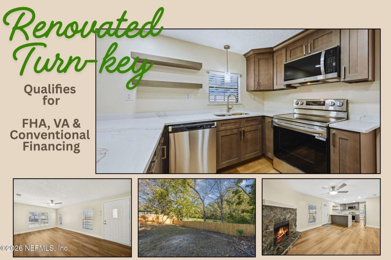 Motivated Sellers! HOME OWNERSHIP UNDER $225K! Are you looking for an affordable, move-in-ready home near NAS Jacksonville? This fully updated 3BR/2BA property offers a fresh, clean interior with plenty of room to spread out. It qualifies for FHA, VA, & Conventional financing, making it a perfect starter home or rental income generating option. Key Features: Spacious Layout: Large living room, separate dining, and a family room with a wood-burning fireplace.Fresh Interior: New wood-look vinyl plank flooring, new lighting, and ceiling fans throughout. Updated Kitchen: All-new cabinetry, quartz countertops with a breakfast bar, and new stainless steel appliances. Major Upgrades: Peace of mind with a brand-new roof and HVAC system.Outdoor Living: Primary bedroom has private sliders to the deck/patio. Includes a new privacy fence and a 1-car carport.Enjoy a clean, functional, and completely renovated space at an unbeatable price point. Schedule your tour today!