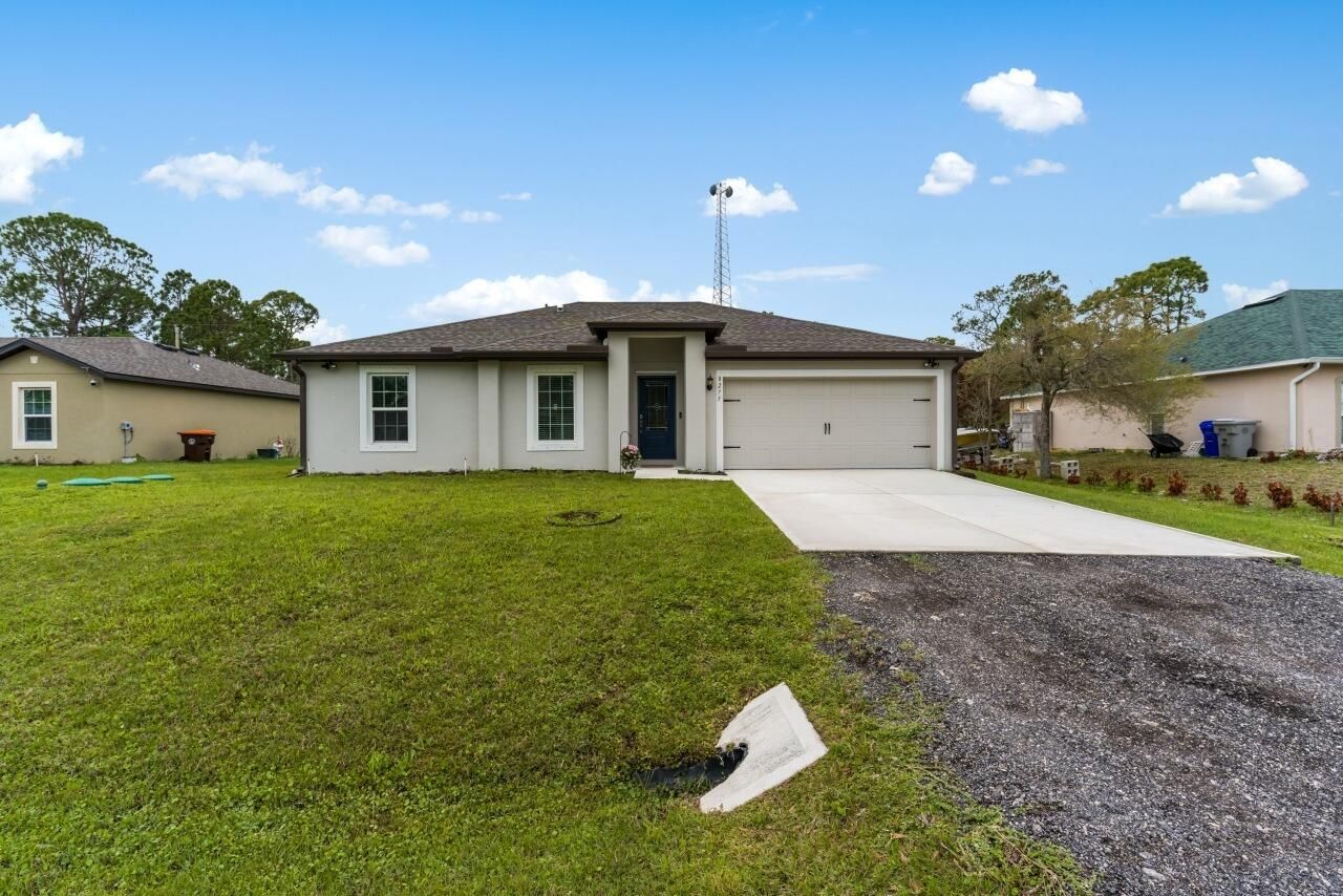 The Vero plan by LGI Homes offers the perfect blend of quality, efficiency, and affordability in Vero Lake Estates with NO HOA. This 3-bedroom, 2-bath CBS home features 1,264 sq ft of thoughtfully designed living space on a .22-acre lot with a 2-car garage and an expansive backyard larger than many comparable builds. Ideal for pets, play, or a pool! Inside, enjoy a chef-ready kitchen with granite countertops, modern white cabinetry, and a full Whirlpool appliance package including washer and dryer. The open layout is complemented by durable vinyl plank flooring in main areas and comfortable carpet in bedrooms. Bathrooms feature quartz countertops, while energy-efficient upgrades include double-pane Low-E windows, a programmable thermostat, and smart home features like a Wi-Fi enabled garage door opener. Additional highlights include a 4-zone in-ground irrigation system, whole-house gutters, owned water softener, and Culligan reverse osmosis system at the kitchen sink. Lightly lived in and move-in ready, this home delivers exceptional value, modern finishes, and everyday functionality in one of Vero Beach's fastest-growing areas.